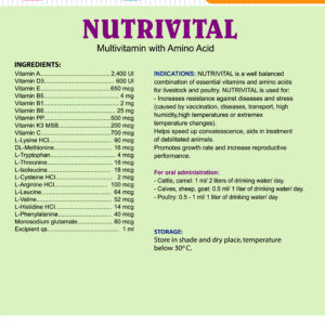 – Promotes rapid growth, weight gain: 1–2 ml/kg feed, twice daily, for 3 consecutive days. Repeat every 10 days throughout the culture period.