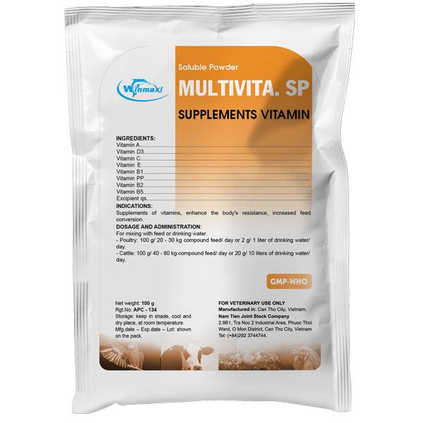 – Poultry: 100 g/ 20 – 30 kg compound feed/ day or 2 g/ 1 liter of drinking water/ day.