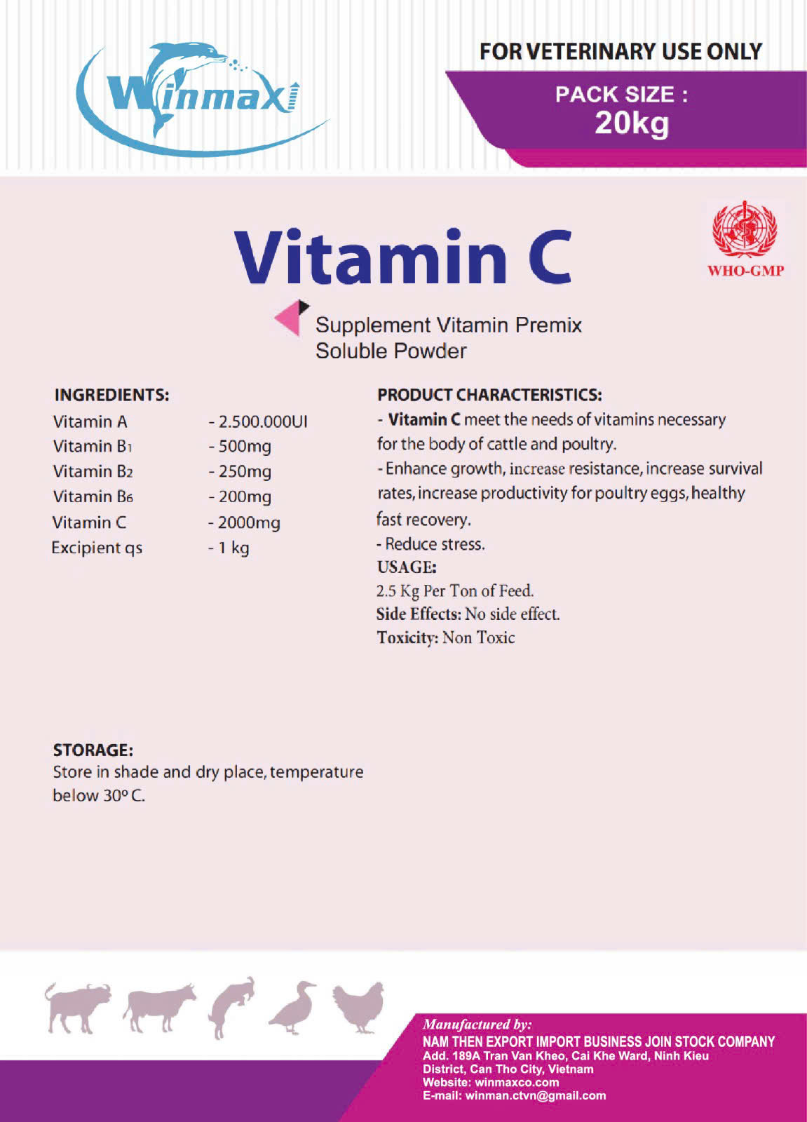 Vitamin C meets the needs of vitamins necessary for the body of cattle and poultry.