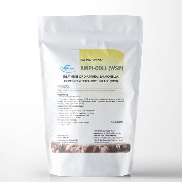 – Prevention of diseases such as: CRD, pneumonia, respiratory infections, white dung typhoid, coccidiosis, gastritis, inflammatory bowel,…Diseases are caused by bacteria Gram (-), Gram (+) in cattle, poultry.